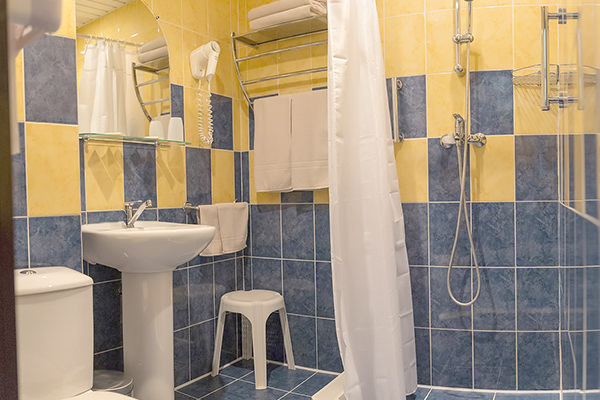 Площадь номера - 16,5 кв.м. 1 осн. место. Балкон. Мебель: вешалка, зеркало, кровать полутороспальная, прикроватная тумбочка, стол, столик журнальный, стул, шкаф-купе. Оборудование: телевизор, телефон, холодильник, чайный набор посуды, электрочайник. Санузел: с душевой кабиной, туалетные принадлежности, фен. Сервис: Wi-Fi бесплатно, смена полотенец, смена постельного белья, уборка номера, услуги внутренней телефонной связи.