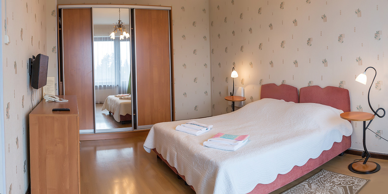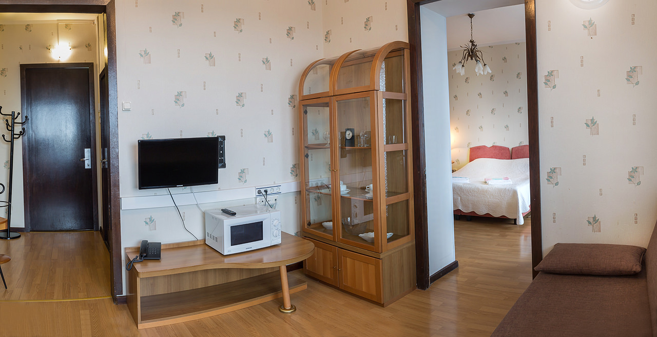 Площадь номера - 36 кв.м. 2 осн. места. 1 доп. место. Балкон. Мебель: вешалка, диван, зеркало, комод, кресло, кровати односпальные /одна двуспальная кровать, прикроватные тумбочки, пуфик, столик журнальный, шкаф. Оборудование: телевизор, телефон, чайный набор посуды, электрочайник. Санузел: с душевой кабиной, туалетные принадлежности, фен. Сервис: Wi-Fi бесплатно, смена полотенец, смена постельного белья, уборка номера, услуги внутренней телефонной связи.